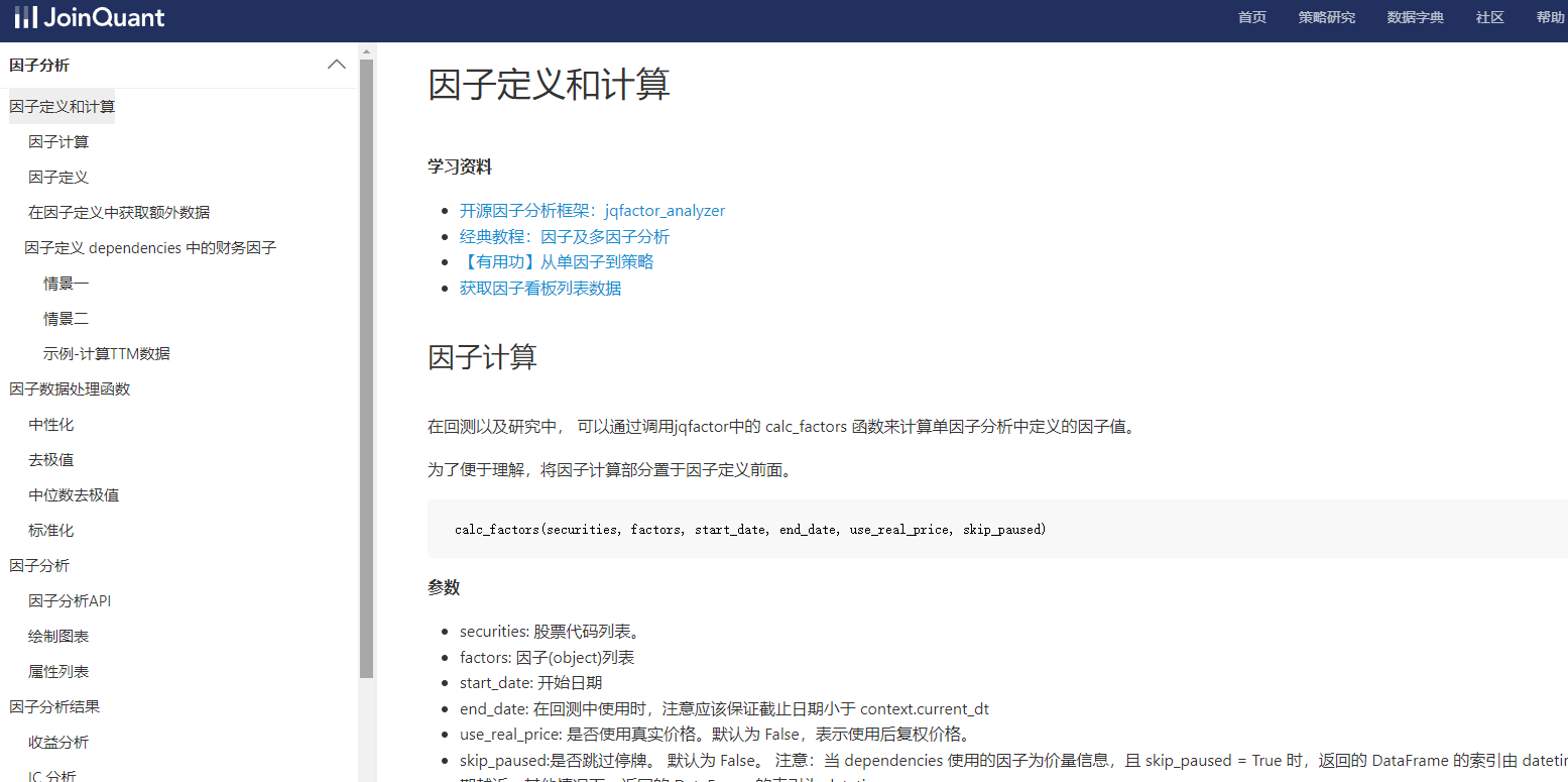 此网页为聚宽官网提供的因子分析文档,里面详细介绍了因子分析如何使用。